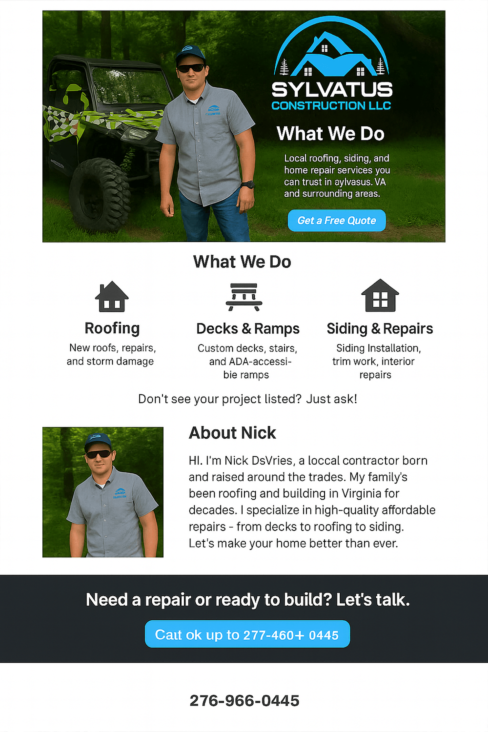 Nicholas grew up in construction with his parents in the roofing and real estate business. Learned from the time he could walk to build and remodel homes.